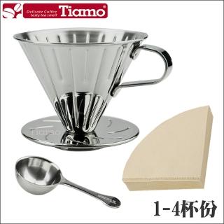 【Tiamo】0916 V02不鏽鋼圓錐咖啡濾器組-鏡光款(HG5034MR)